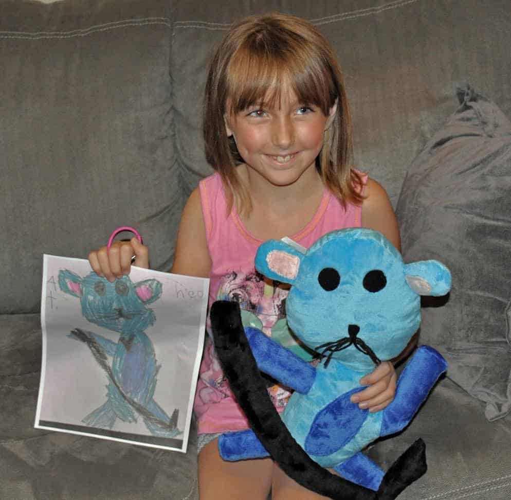 While on Facebook, Katherine saw an advertisement for Budsies and decided to check it out. Once she discovered the possibility to turn art into a huggable custom stuffed animal, she wrote to her sister Ann asking her to have Kayden draw a picture of a toy that she would like to have for her soon-to-be baby brother Bryce. Ann happily obliged and Kayden immediately got to work.